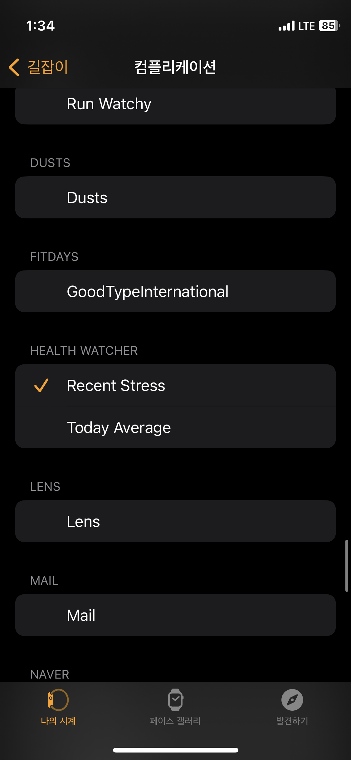 컴플리케이션으로 등록 가능한 정보는 Recent Stress 정보 또는 Today Average 정보를 설정하여 볼 수 있습니다!